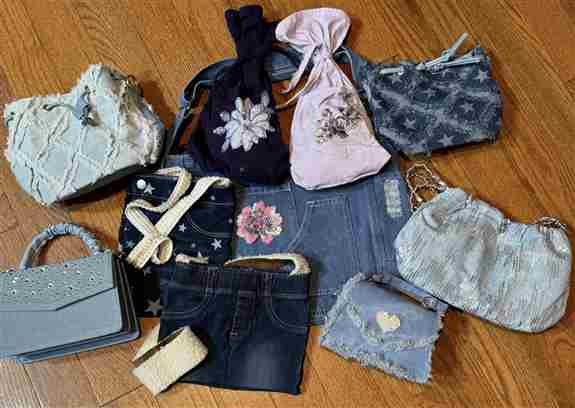 Dreamy Jules carries many designs on blue and black denim jackets as well as unique bling accessories to add a personal touch.
