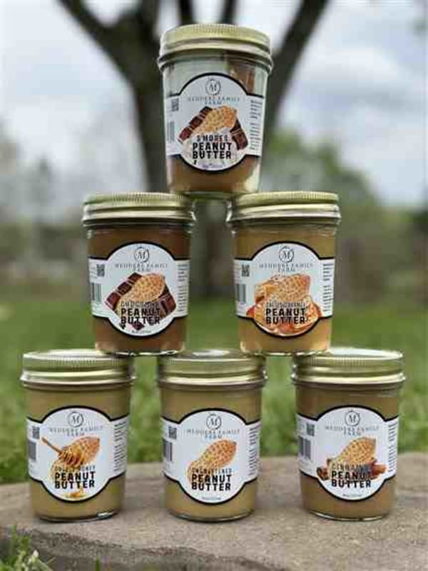 We are a gourmet, all natural, fresh peanut butter company! We use only the freshest local ingredients. Only sweetened with local honey. Our products are healthier than most store bought brands and gluten free from even cross contamination. Our best sellers are Salted Caramel and Smores but you can’t go wrong with even Double honey or plain unsweetened! Stop by and try a sample, leave with several jars.Product Images: