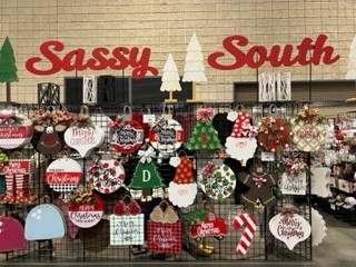 Sassy South Art creates quality hand crafted woodworking and home decor. We specialize in Personalized Door Hangers in addition to Christmas Oornaments, signs, yard art, porch decor, mantle decor for everyday and seasonal. We also carry a large selection of ribbon and bows for our pieces or yours.Product Images: